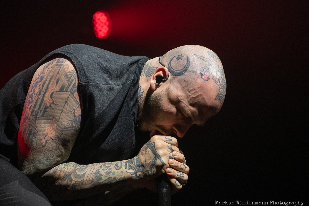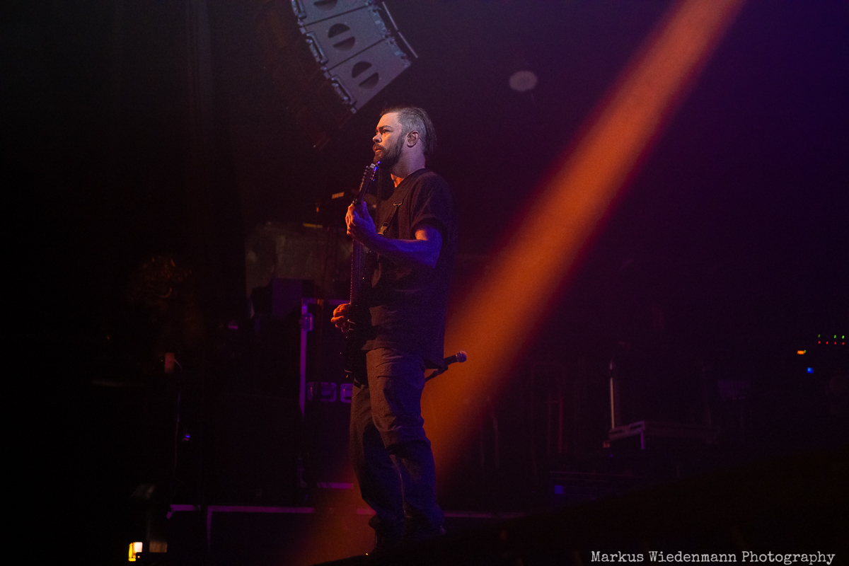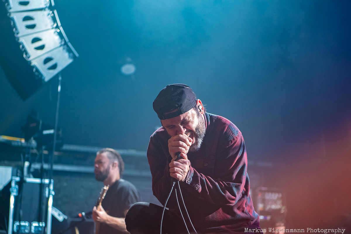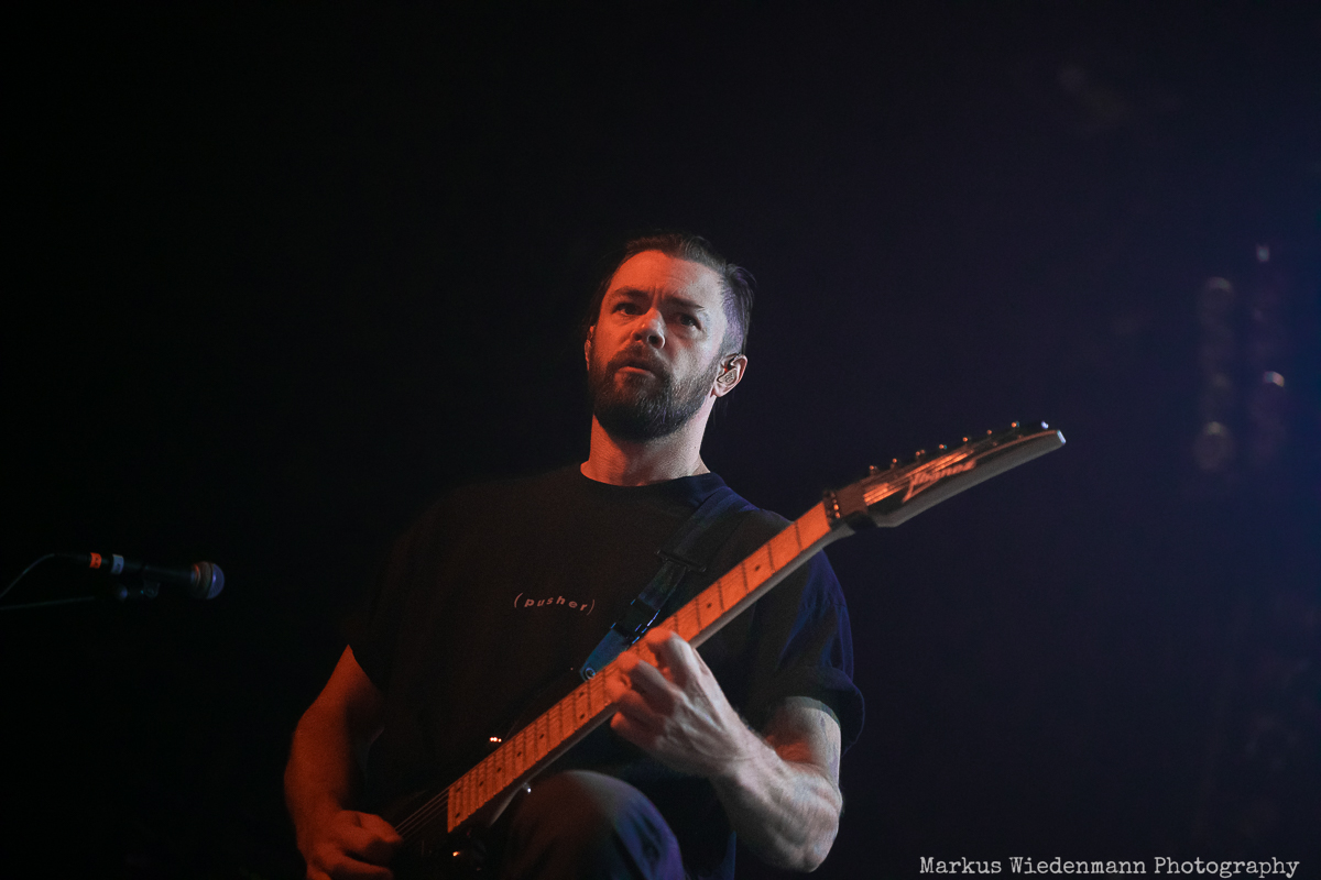 The show starts early tonight. Great American Ghost takes the stage at 6:30 p.m. sharp. The Boston-based metal band opens with “Hymn of Decay” and suffers from some sound issues. It’s a massive start, though, and since the sound improves quickly, we witness a very intense set. The fusion of blasting beats, grooving moments, and Ethan Harrison’s strong presence makes this a great way to start a night full of metalcore. During “Lost in the Outline,” Harrison joins the circle pit in the crowd before starting “Kerosene” with a short speech about global problems related to social imbalance and political menace. Great American Ghost has 30 minutes for their six-song set, which ends with a new song, “Forsaken.” And what could be a better finale than shouting the last parts of the song from the bar counter in the hall? Great American Ghost got everyone fired up and set the stage for the next band.