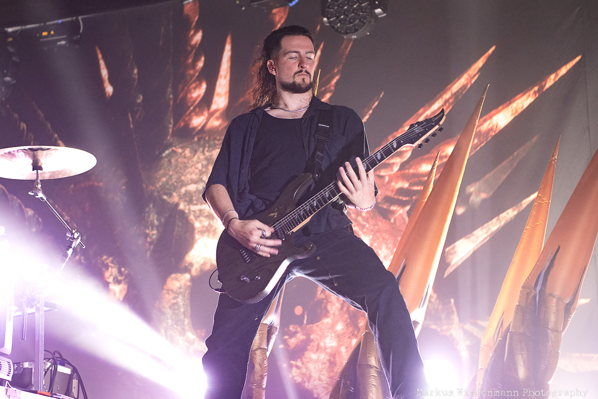 Bleed From Within starts their show with an intro. Shania Twain’s “Man! I Feel Like a Woman” runs through the PA, providing a strong contrast to the massive blast of “Violent Nature.” It doesn’t take Bleed From Within long to ignite the spark. The crowd goes wild from the first riff. Tonight’s focus is on their latest studio album, “Zenith,” from which eight songs are on the setlist. The title track is second on the list, followed by “Sovereign” from the “Shrine” era. The band clearly enjoys performing and delivers a powerful, energetic show. Frontman Scott Kennedy is especially all over the place while shouting his lungs out.