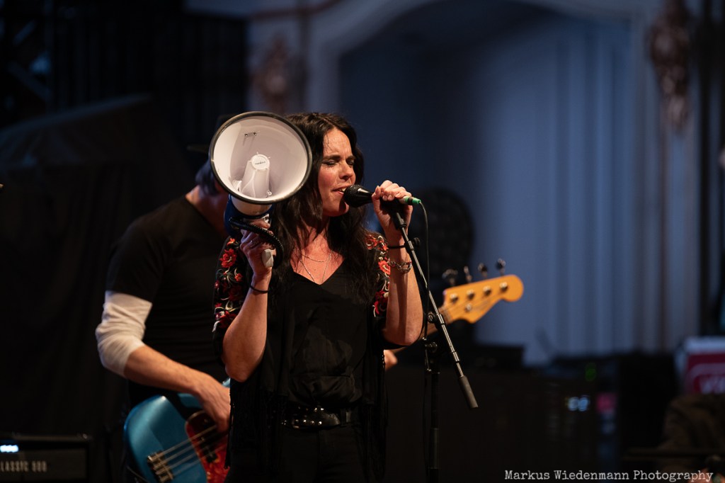 Singer Pertonella Nettermalm is at the heart of the performance. Her voice covers a wide range, from calm singing to loud screams. Not only does she have a great voice, but she also contributes percussion and even uses a megaphone to start a song.