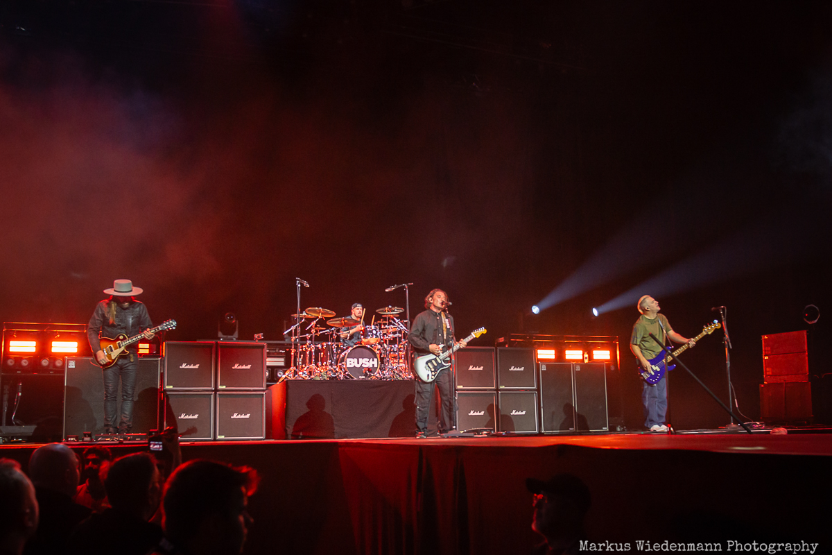 The four-piece band hails from Manchester, UK, and their music is rooted in rock and grunge with a dark vibe. Witch Fever tries hard to set the mood in the huge hall, but the fans came for Volbeat, and the sound of the opening act is not close to that of the main act. Witch Fever spreads a gloomy vibe, which might work better in a smaller venue. Still, the quartet receives honest applause at the end of their set, then hands the baton to Bush.