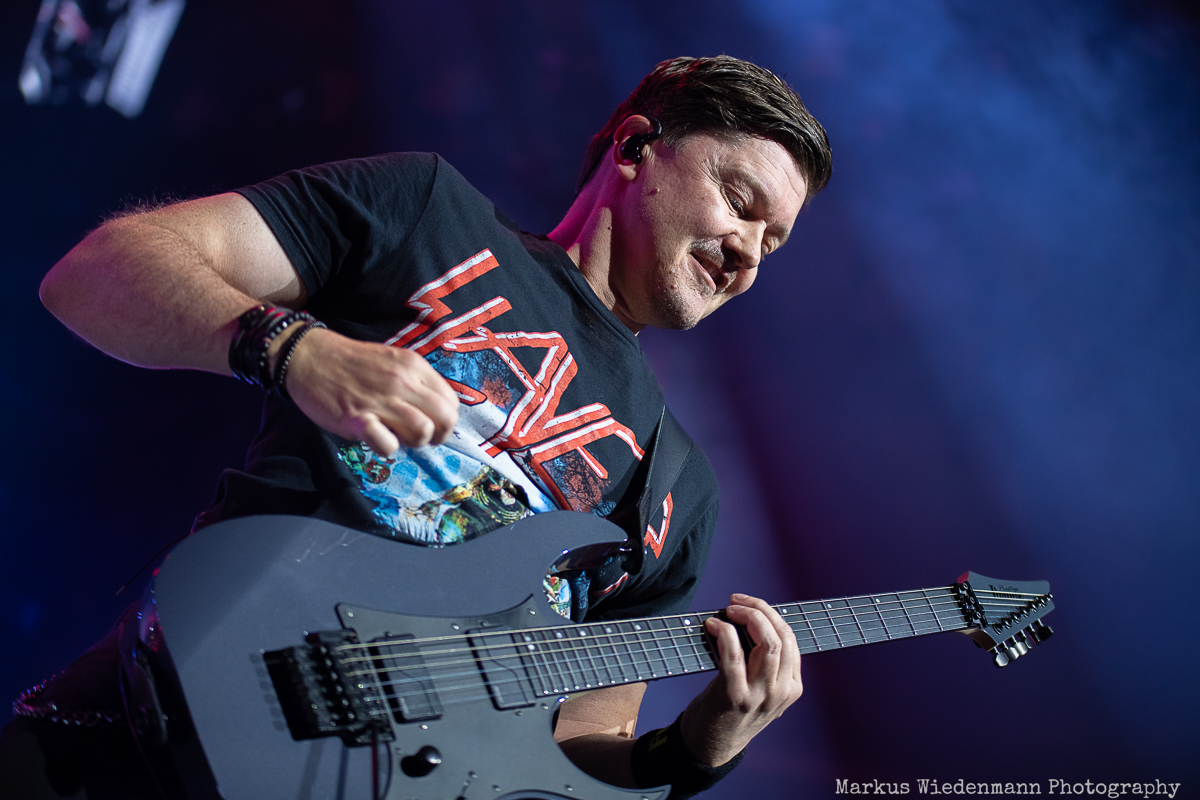 In the meantime, no one is sitting anymore as the energy level remains sky-high. The special that comes with “Still Counting” is the next highlight. Family seems to be important to the Danish bandleader, who invites kids in the audience to join him onstage, bringing the next generation of rock and metal fans into the spotlight. Singing along with the band is surely a thrilling moment for all these young fans. And since it is the digital general, a few selfies at the end of the song need to be taken, capturing a unique once-in-a-lifetime moment for these kids.