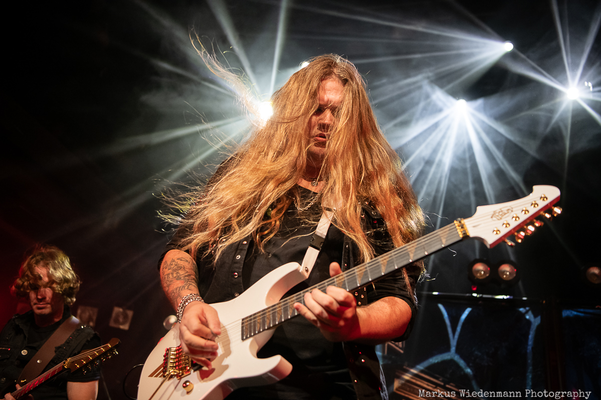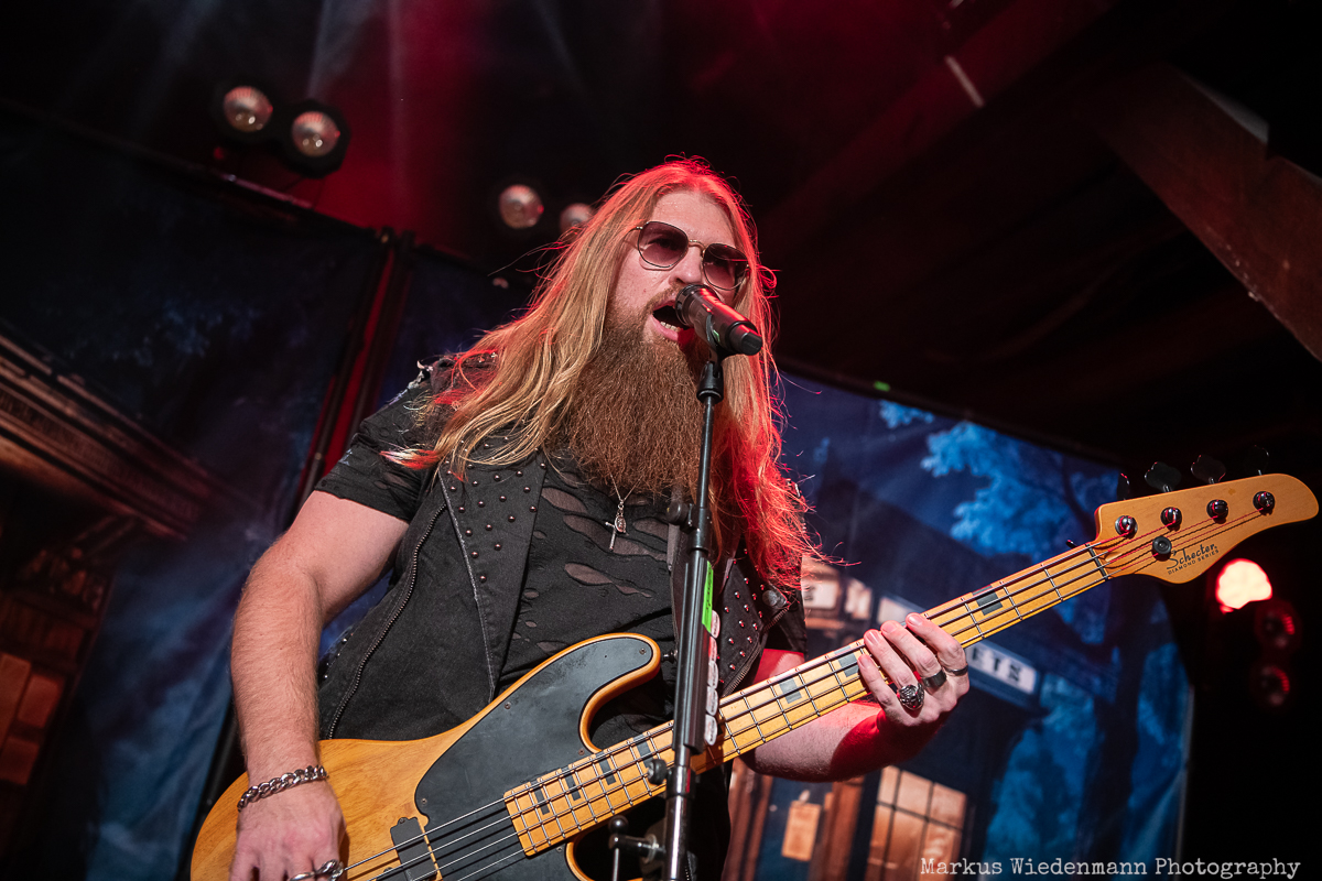 The popularity of this line-up is reflected in the long queue outside, meaning that more than a few people want to see Majestica. Inside the venue, the room is already well-crowded when the Swedes enter the stage to a big round of applause. Majestica open their set with “Power Train”, and the audience is with them right from the start. The four-piece band from Boden has released three albums, two of which provide songs for tonight’s show. It wouldn’t make much sense anyhow to play tracks from the Christmas album while the focus is on the debut. With “Night Call Girl” and “Rising Tide”, we go back to 2019, and fans of all ages are excited. Majestica’s task is to get the crowd in the right mood, and they certainly succeed tonight. Their lively set went by in a flash.