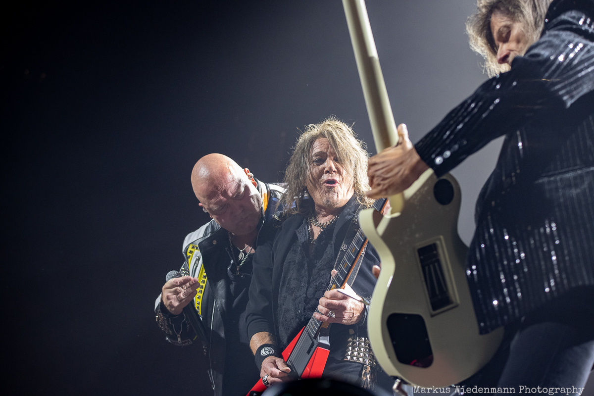 Although the music is the main focus, Helloween have decided to go for a big show approach. A huge digital backdrop allows projections such as a view of Tokyo streets during “This is Tokyo” and the lyrics of “Universe (Gravity of Hearts)”. The latter makes it easy for fans to sing along, and they know the lyrics by heart — especially those of the early classics. A large group of fans join in with the choruses of “Twilight of the Gods” and “I Want Out”. These songs laid the foundation for Helloween’s rise to fame, and 40 years later, experiencing these timeless metal classics is still exciting.