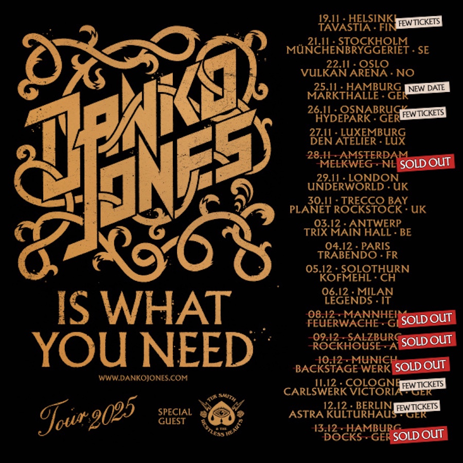 To celebrate the release, Danko Jones will hit the road this winter for the “Danko Jones Is What You Need” European Tour 2025, with Tuk Smith & The Restless Hearts supporting on most dates: