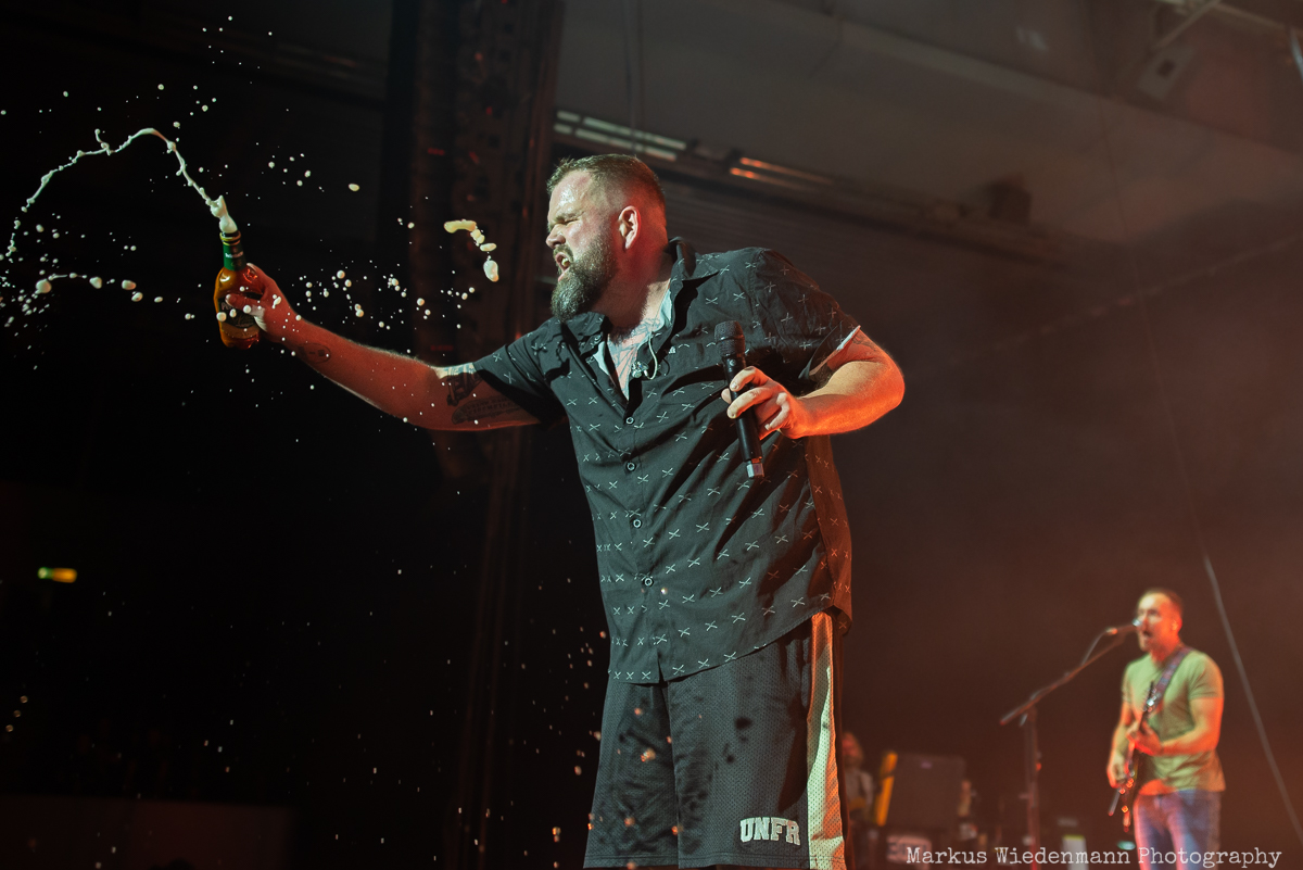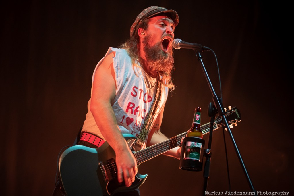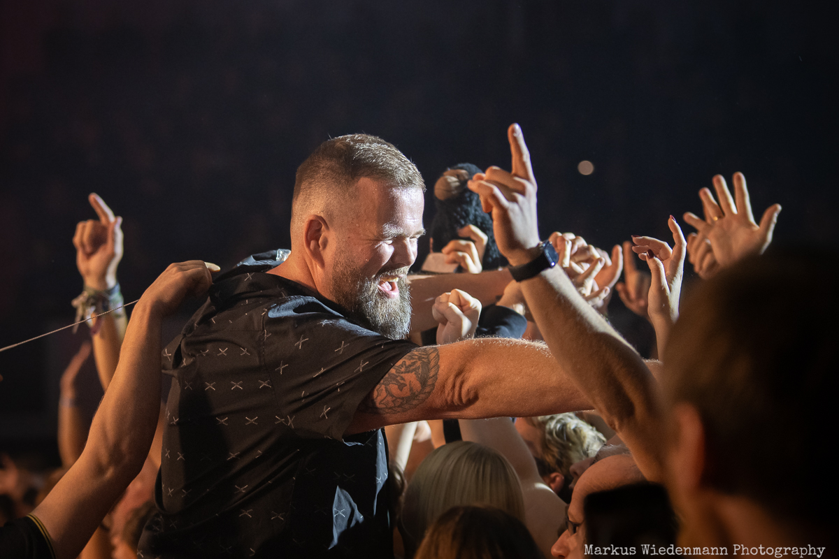 “Zurück in unsere Stadt” follows, and nothing can stop Monchi from jumping into the pit and mingling with the crowd. He is the centerpiece of a Feine Sahne Fischfilet show, and he has an exceptional connection with his fans. Before the show, you can see him in the public area talking to fans and taking photos with them. He announces the opening act, then crowd surfs, enjoying every moment.