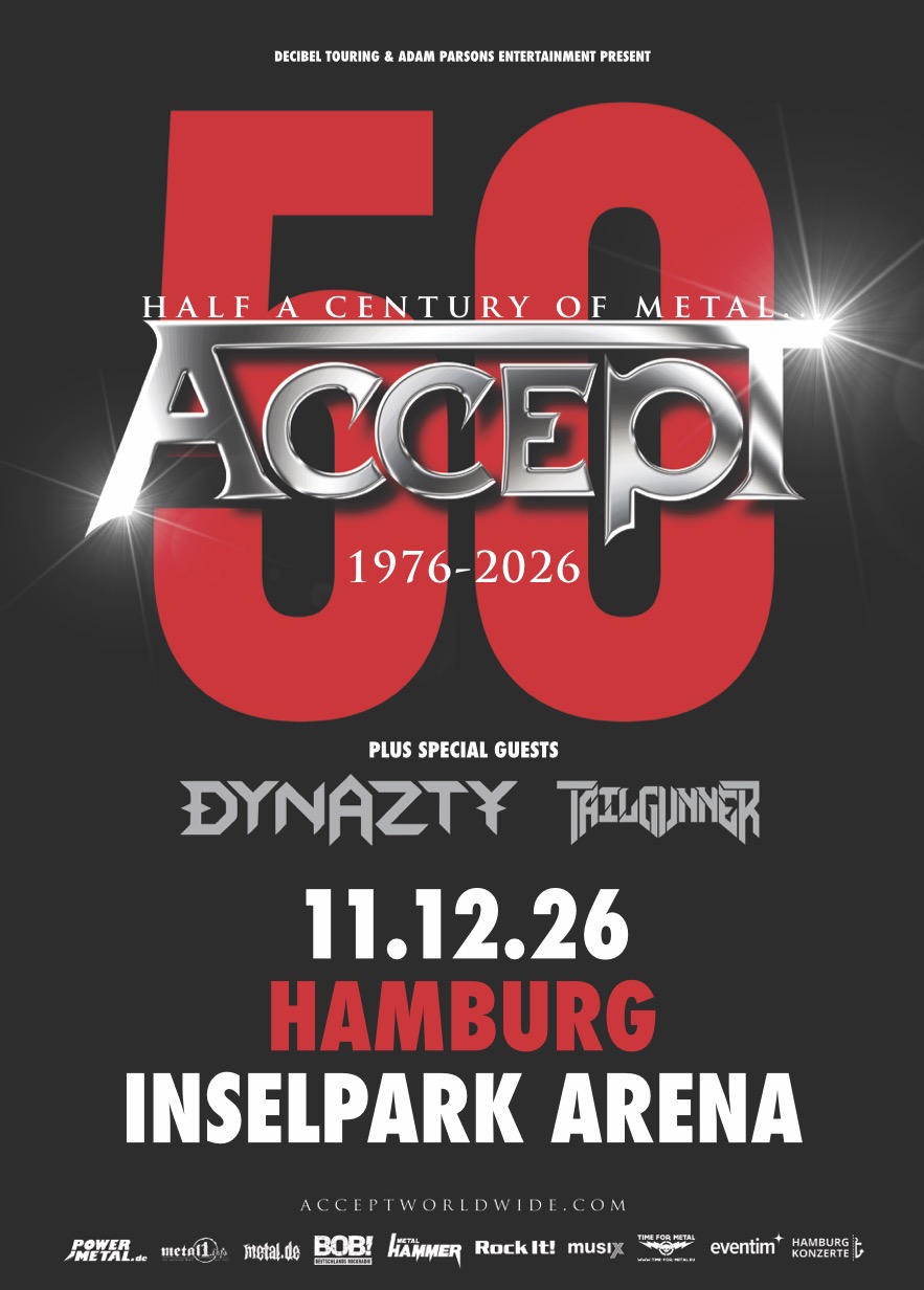 Accept, the pioneers of heavy metal, have just announced a new tour. Entitled “Half a Century of Metal”, the tour will feature songs from the band’s career spanning 1976 to 2026. Accompanying them on the tour will be Dynazty and Tailgunner.