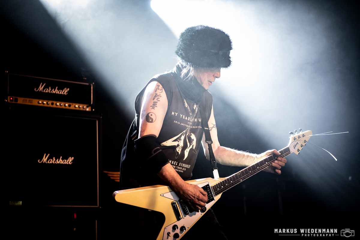 Five decades later, the guitar wizard has revisited several classic UFO tracks and now brings them back on stage. The set opens with “Natural Thing” from the album “No Heavy Petting”, instantly transporting the audience back to 1976. The momentum continues with “Only You Can Rock Me”. Much of tonight’s crowd grew up with these songs, and the surge of adrenaline is palpable – from the very first riff to the final note.
