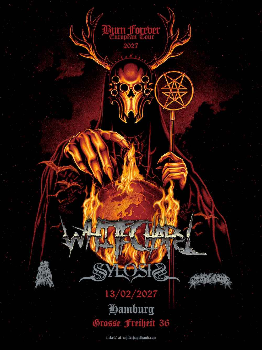 Comments Whitechapel’s guitarist Alex Wade. “We are excited to announce the ‘Burn Forever European Tour 2027’. This will mark a long over due full European headline run featuring some of the sickest names in modern metal. The mainland Europe dates we will be headlining while all of the UK dates we will be co-headlining with Sylosis with them closing. We look forward to seeing everyone out there, new fans and old, don’t miss it!”