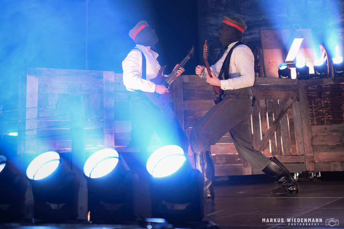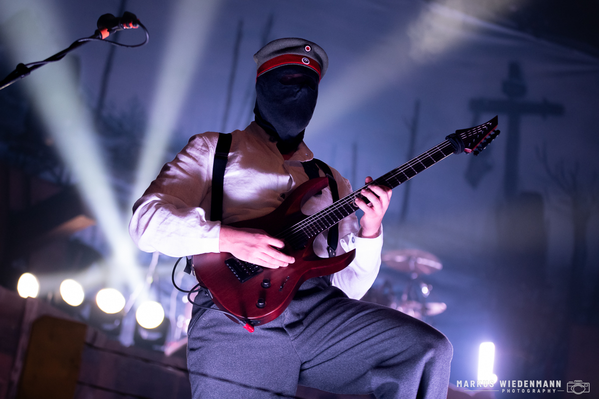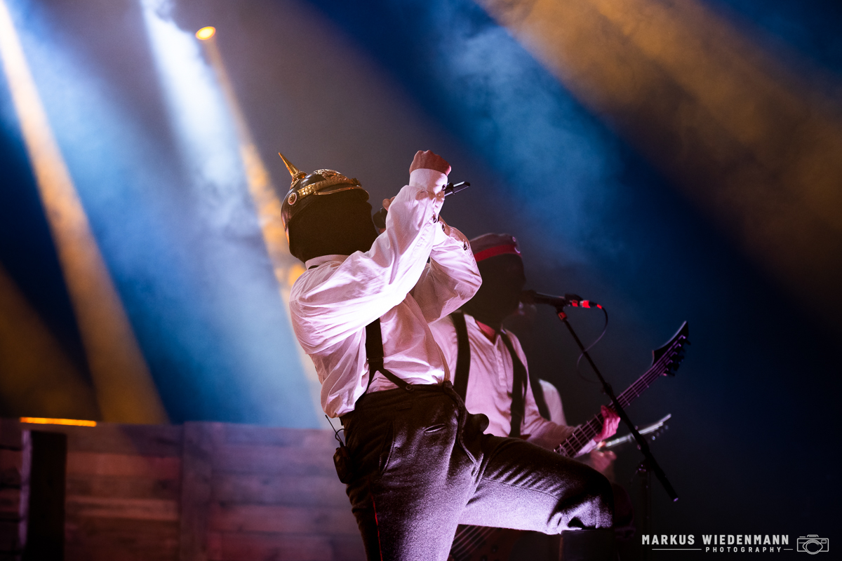 Kanonenfieber don’t just deliver a metal show. They offer a fusion of extreme metal, a stage show and history, and it is this combination that makes the evening so thrilling. Since faces are hidden behind masks, the focus is not so much on the musicians, although the bandleader, Noise, is the one who is being focused on. There are no speeches to the fans, as Kanonenfieber deliver their theatrical performance, putting the audience under a spell.