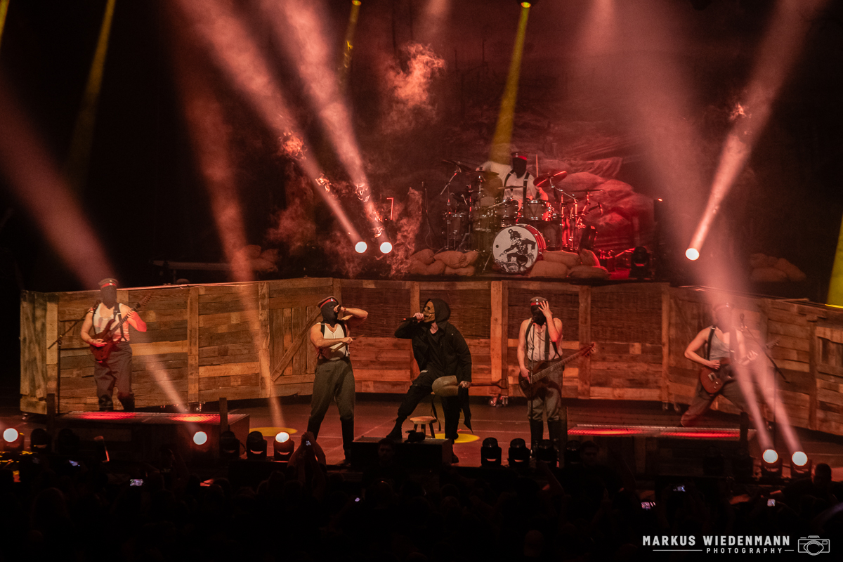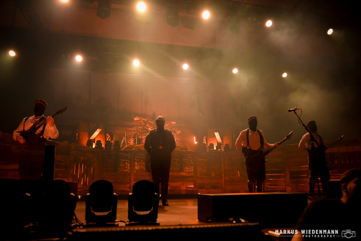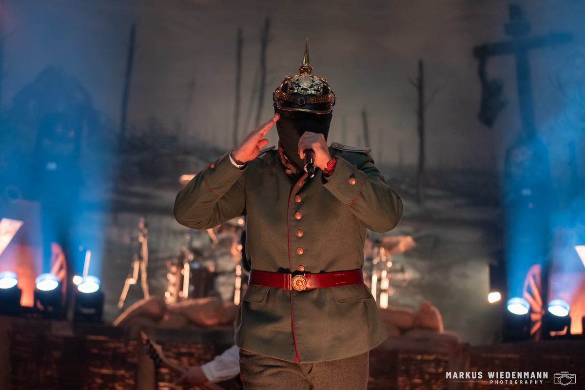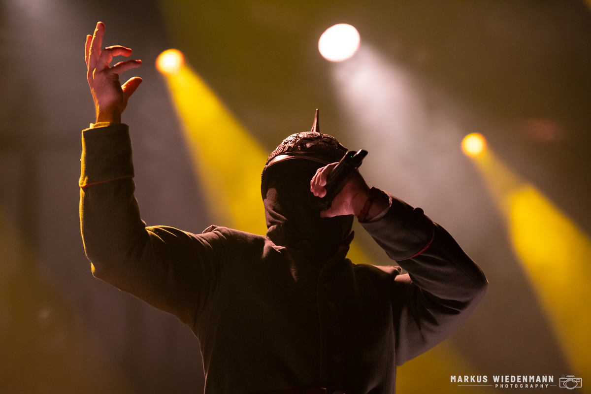 Kanonenfieber don’t just deliver a metal show. They offer a fusion of extreme metal, a stage show and history, and it is this combination that makes the evening so thrilling. Since faces are hidden behind masks, the focus is not so much on the musicians, although the bandleader, Noise, is the one who is being focused on. There are no speeches to the fans, as Kanonenfieber deliver their theatrical performance, putting the audience under a spell.