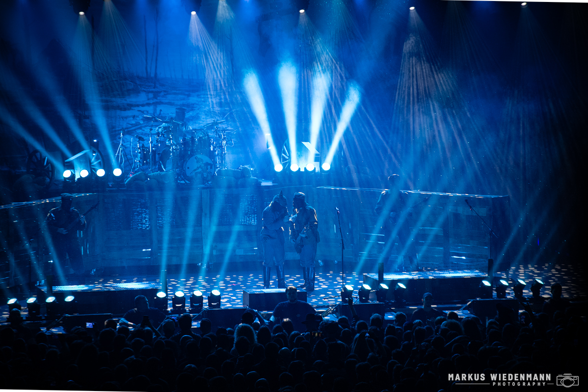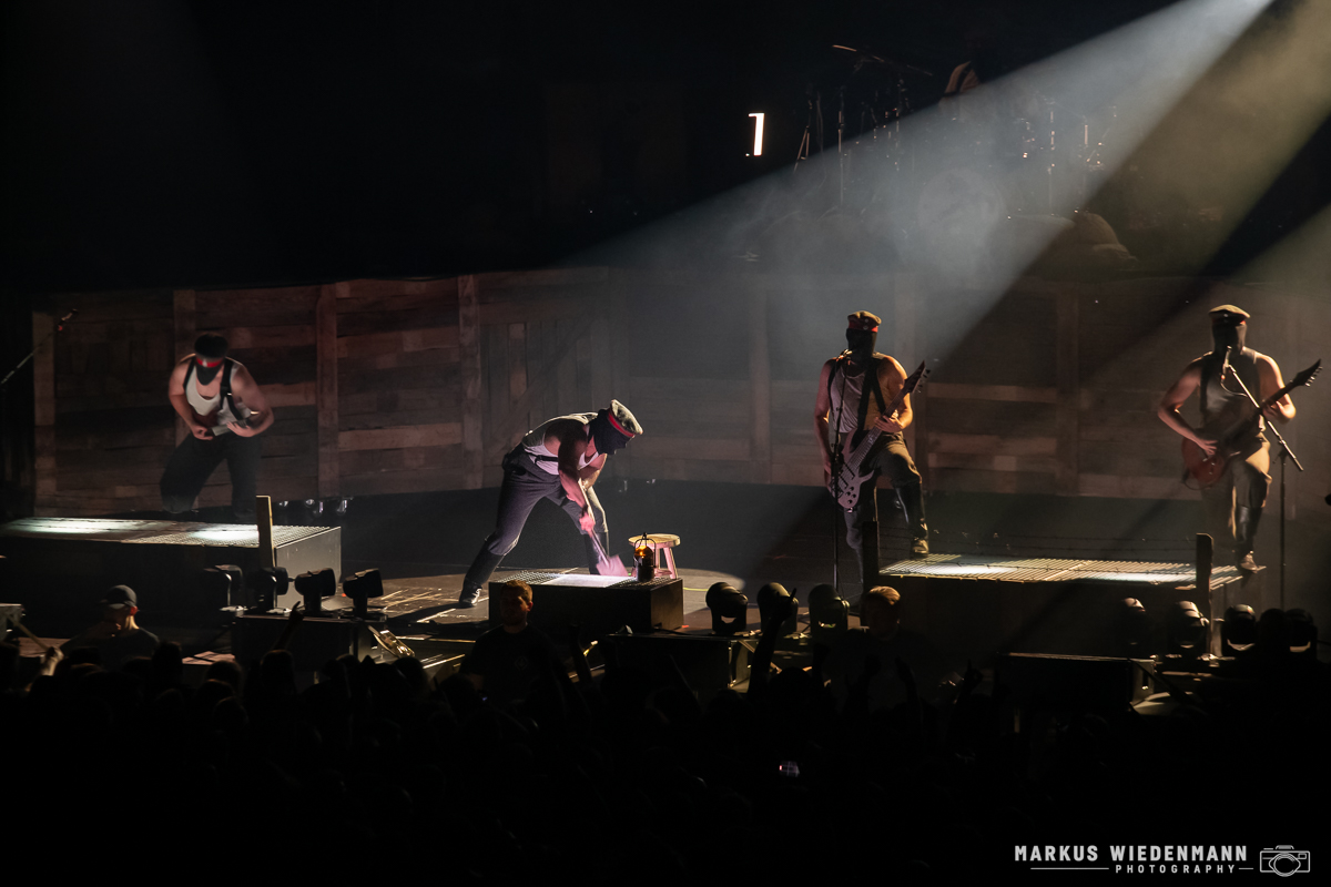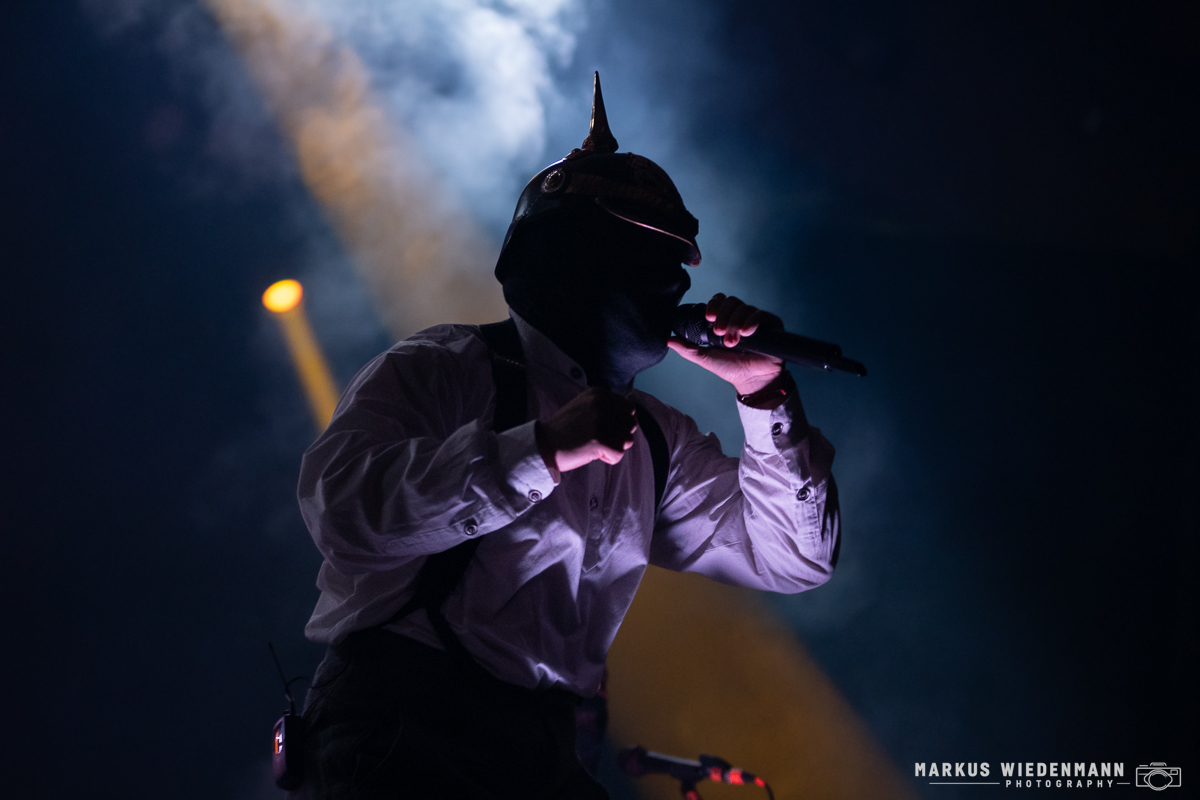 On the subject of theatrical moments, there is even some acting on stage, such as Noise crawling over the floor to reach the red light, which symbolizes fire and warmth during the merciless times of war. Furthermore, during “Heizer Tenner”, he ‘shuffles coal,’ and during the thunderous version of “Der Maulwurf”, he wields a spade. These are moments that complete the show and emphasis the theme of the cruelties of war. In its totality it’s an oppressive atmosphere the band generates which is intended and one part of the fascination.