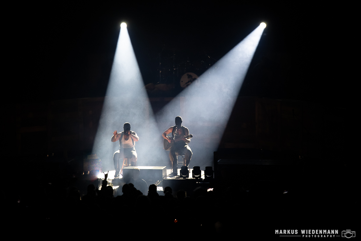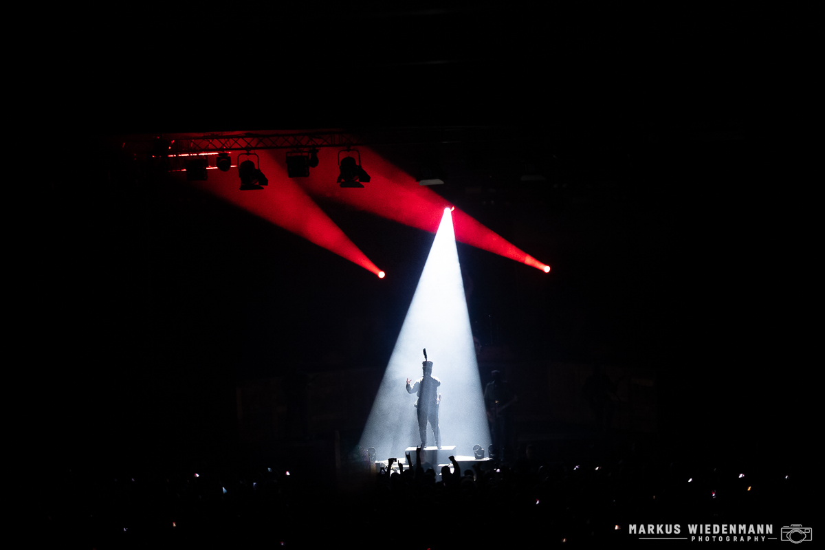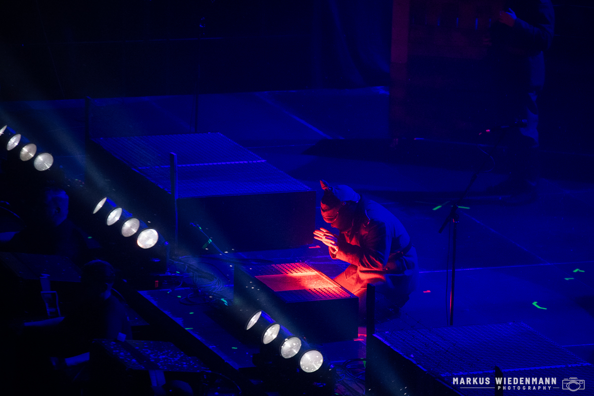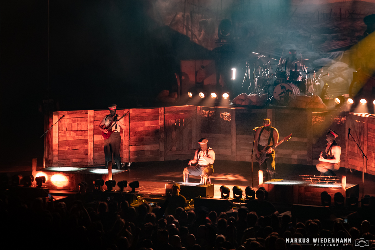 On the subject of theatrical moments, there is even some acting on stage, such as Noise crawling over the floor to reach the red light, which symbolizes fire and warmth during the merciless times of war. Furthermore, during “Heizer Tenner”, he ‘shuffles coal,’ and during the thunderous version of “Der Maulwurf”, he wields a spade. These are moments that complete the show and emphasis the theme of the cruelties of war. In its totality it’s an oppressive atmosphere the band generates which is intended and one part of the fascination.