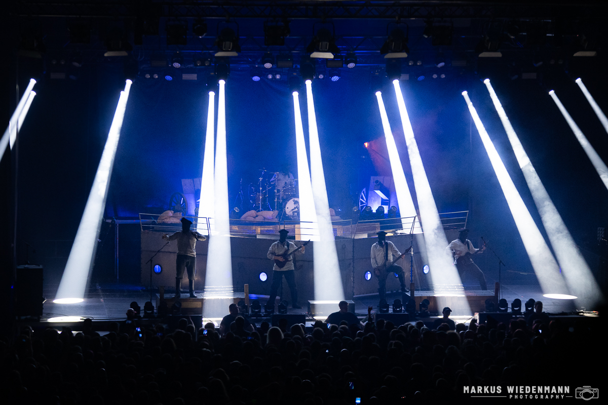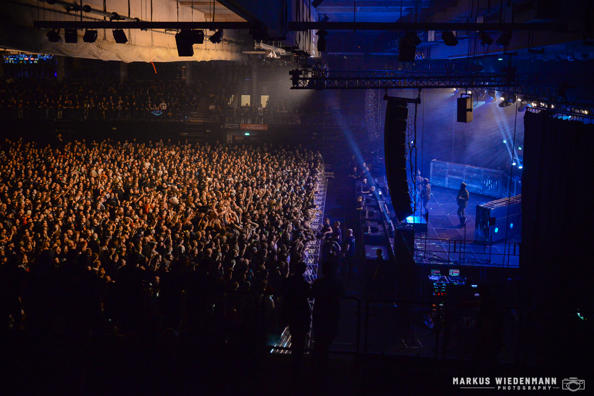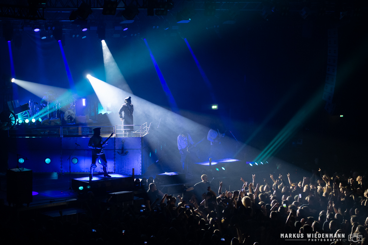 The stage is unmistakably ready for Kanonenfieber when the intro fills the room. “Die Feuertaufe” is the first song of the night, and as soon as the band takes to the stage, it becomes clear why fans have come to the Inselpark Arena. Some of them are dressed in Kanonenfieber outfits and the room turns into a madhouse of enthusiastic fans who are completely captivated by the band, their image and their music.