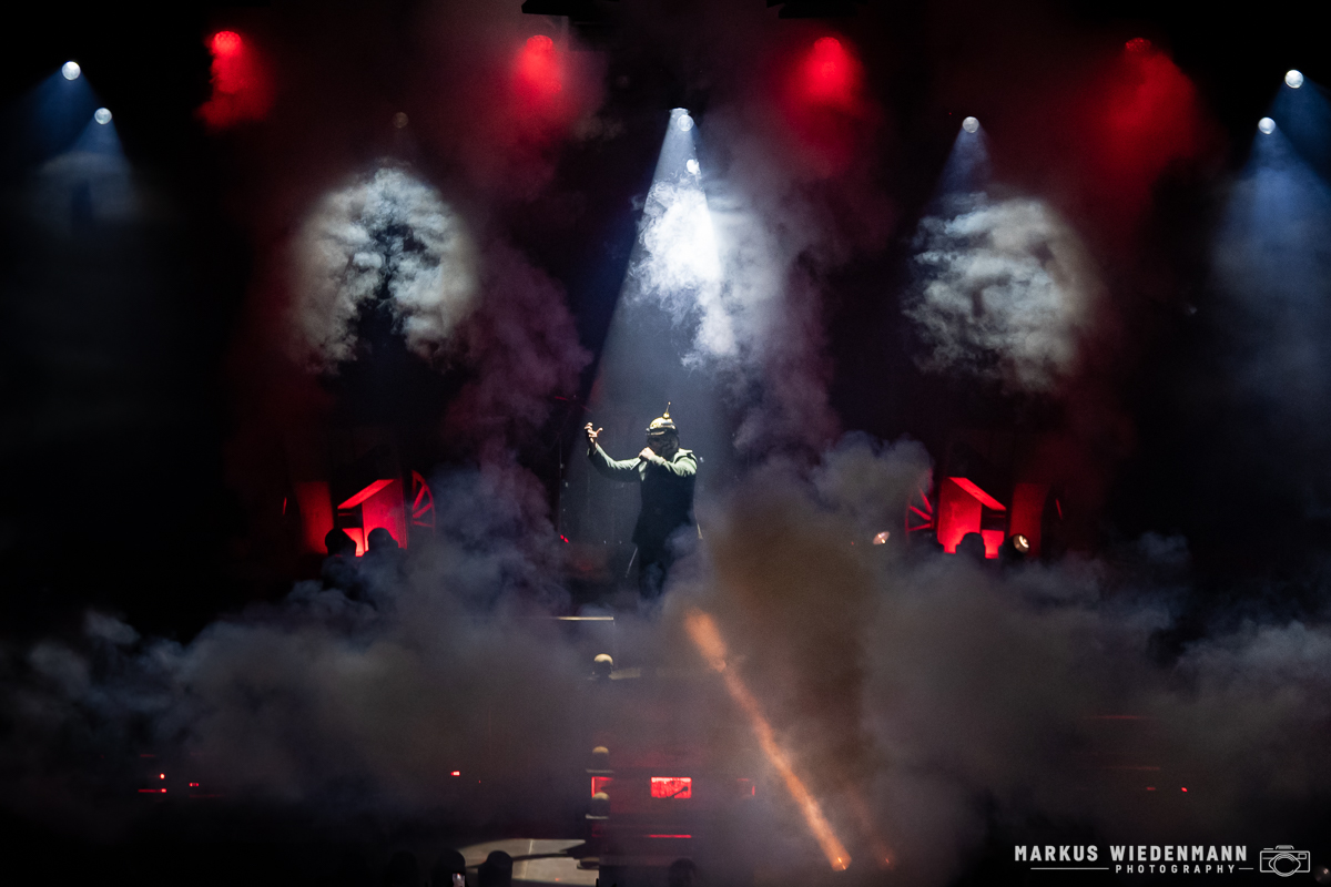 Kanonenfieber don’t just deliver a metal show. They offer a fusion of extreme metal, a stage show and history, and it is this combination that makes the evening so thrilling. Since faces are hidden behind masks, the focus is not so much on the musicians, although the bandleader, Noise, is the one who is being focused on. There are no speeches to the fans, as Kanonenfieber deliver their theatrical performance, putting the audience under a spell.