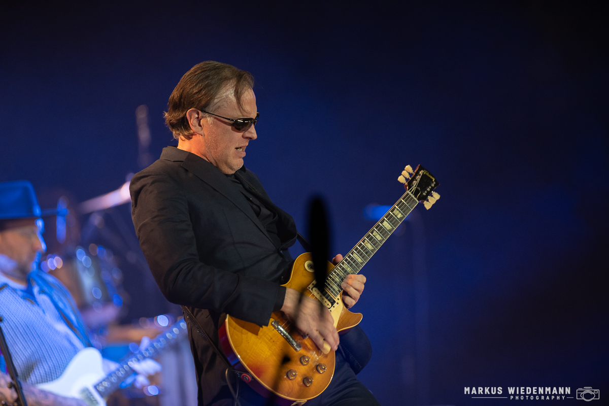 Around halfway through the set, Joe Bonamassa introduces the band in a humorous and unusual way. He starts by saying that Hamburg is always a great place to play a show, but could the city get an airport with direct international flight connections? What follows is the travel itinerary of each band member, including all the stopovers. This makes everyone smile, especially when Bonamassa mentions him running through Schiphol Airport in Amsterdam to catch the flight to Hamburg, an experience I can relate to. Fortunately, everything worked out and he is now on stage.