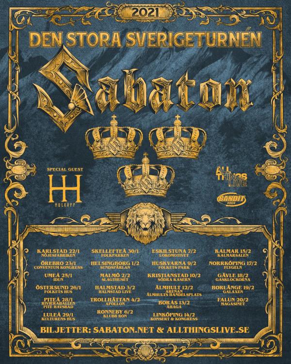 Today, Sabaton announce new tour dates for early next year in Sweden. "This will be the biggest tour for Sabaton in Sweden and probably bigger than any other metal band tour ever done there. We looked for places where nobody thought Sabaton would play, which is the reason we wanted to play there. This is... Continue Reading →