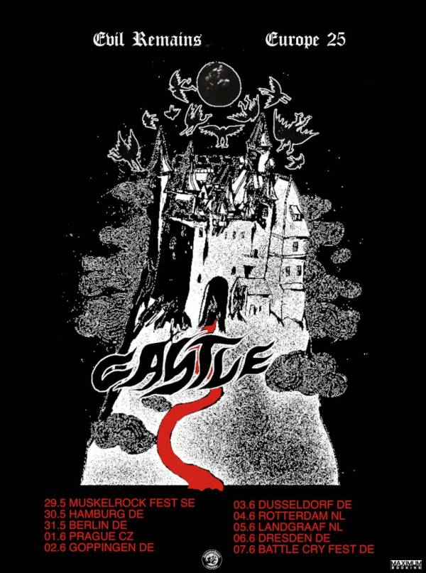 US/Canadian heavy doom outfit Castle have just announced new European tour dates in support of their recent album “Evil Remains”, which was released in September 2024 via Hammerheart Records. A full list of confirmed shows can be found below. Castle comment on the trek: "We didn't get enough of Europe on the last Evil Remains... Continue Reading →