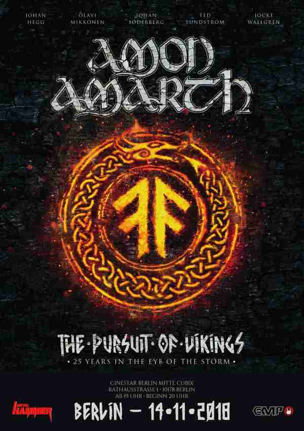 Swedish Amon Amarth will release a documentary DVD / live album entitled 'The Pursuit Of Vikings: 25 Years In The Eye Of The Storm' on November 16th. Prior to the release date, the band announced two cinema premiers of the documentary. The band will be present, with a Q&A- and signing session included at the... Continue Reading →
