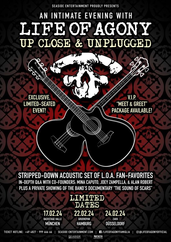 New York metal veterans Life Of Agony will return to Europe in spring 2024 for an intimate evening with Life of Agony up close & unplugged. Three shows will take place in Germany and these are the dates.