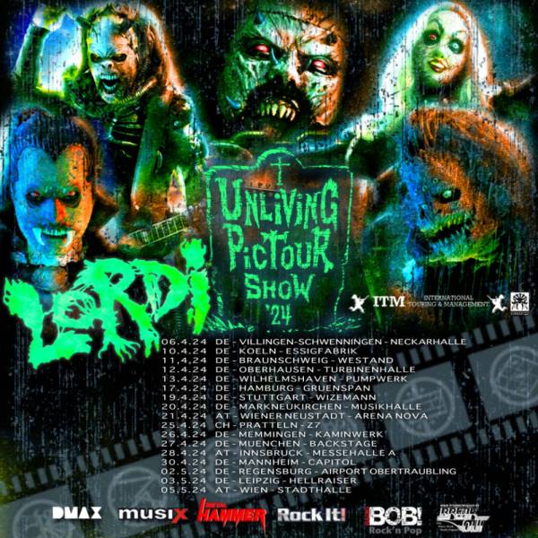 Finlands most famous monsters will hit the road in spring 2024. Lordi will embark on a tour that will lead them also to Germany, Switzerland and Austria. One of the stops on the 'Unliving Pictour Show 2024' will be at Gruenspan, Hamburg on April 17th, 2024.