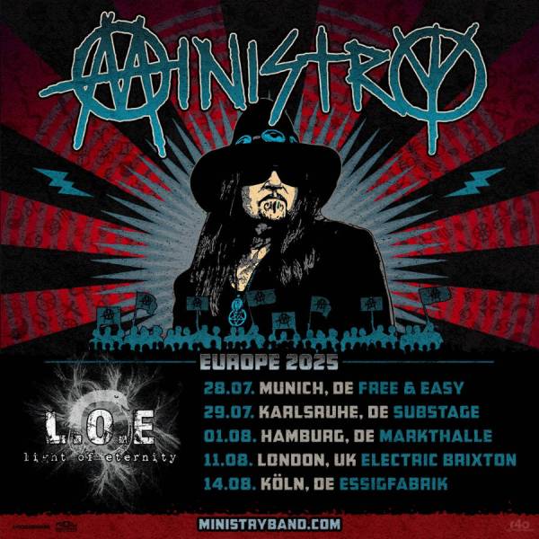 Industrial metal veterans Ministry announced some shows this summer, including Hamburg, Germany. It will be on August 1st, 2025 when Al Jourgensen and bandmates will play a show at Markthalle. Support will be Light Of Eternity and pre-sale started already.