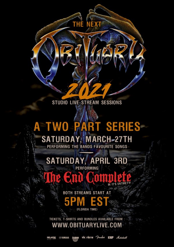 Death Metal Legends Obituary announce their new two part Spring livestream series. Obituary will perform the band’s favorite songs on March 27th and then witness The End Complete in its entirety on April 3rd! Tickets, t-shirts and bundles are available this Friday, March 5th at 1pm EST / 7pm in Europe at www.obituarylive.com.
