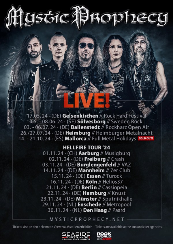 Power metal force Mystic Prophecy will embark ona tour in late 2024, including shows in Germany, Switzerland and The Netherlands. The band will also play on a few festivals this summer. 17 MAY 2024 Gelsenkirchen (DE) Rock Hard Festival06 JUN 2024 Sölvesborg (SE) Swedenrock Festival06 JUL 2024 Ballenstedt (DE) Rockharz Open Air15 OCT 2024 Cala... Continue Reading →