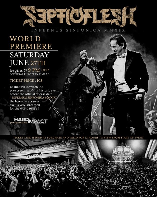 Greek symphonic death metal masters Septicflesh are now announcing a live streaming event for the 'Infernus Sinfonica MMXIX' dvd in advance of the release date! The online event will take place on June 27th, 2020 at 21:00 CET. Tickets can now be purchased HERE and are valid for 12 hours. The full concert was taped in February... Continue Reading →