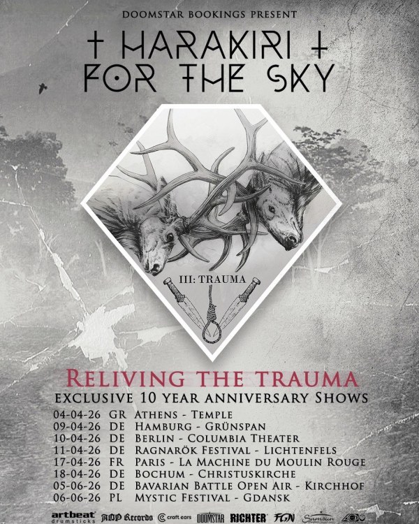 Blackened metal force Harakiri For The Sky announced exclusive 10 Year Anniversary Shows. 04.04.26 Athens - Temple09.04.26 Hamburg - Grünspan10.04.26 Berlin - Columbia Theater11.04.26 RagnarökFestival - Lichtenfels17.04.26 Paris - La Machine du Moulin Rouge18.04.26 Bochum - Christuskirche05.06.26 Bavarian Battle Open Air, Kirchhof06.06.26 Mystic Festival, Gdansk