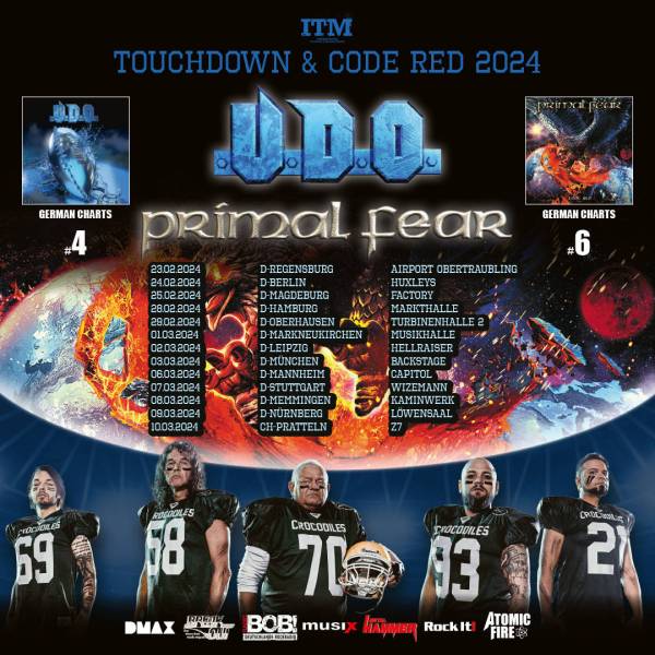 German metal pioneers U.D.O. will embark on a tour in early 2024. The 'Touchdown & Code Red 2024'-tour will also feature no less than Primal Fear; an exciting package for headbangers with that represent the roots of German heavy metal. The package will stop in various cities in Germany and will also ply a show... Continue Reading →