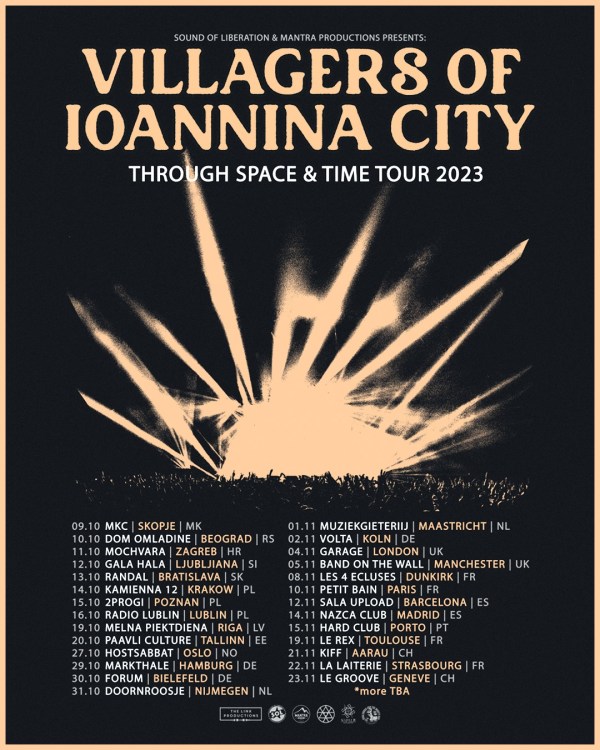 Greek rock outfit Villagers Of Ioannina City will embark on a European tour in autumn 2023. The tour will start on October 9th, 2023 in Skopje and will end in Geneva, Switzerland on November 23rd, 2023; incl. a show at Markthalle, Hamburg on October 29th, 2023.